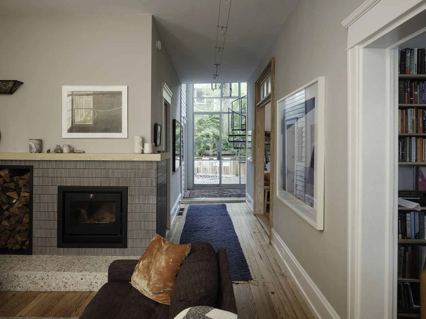 The kitchen was refreshed with refaced cabinetry, improved daylight, and a cozy seating nook. Upstairs, the spiral stair was rotated to improve flow, freeing room for a larger bedroom, an additional bath, and a second laundry. Reworked roof insulation brought comfort and efficiency.